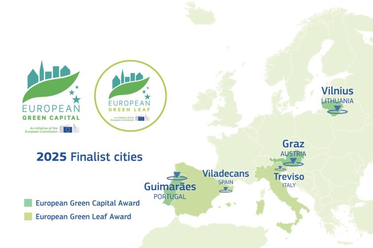 Graz (Austria), Guimarães (Portugalia) și Vilnius (Lituania) sunt finalistele pentru titlul de Capitală verde europeană 2025 pentru orașele cu peste 100. 000 de locuitori. Pentru titlul Frunza verde europeană 2025, deschis zonelor urbane mai mici, finalistele sunt Viladecans (Spania) și Treviso (Italia).