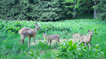VIDEO Imagini de poveste din Apuseni. O căprioară cu doi iezi la scăldătoare