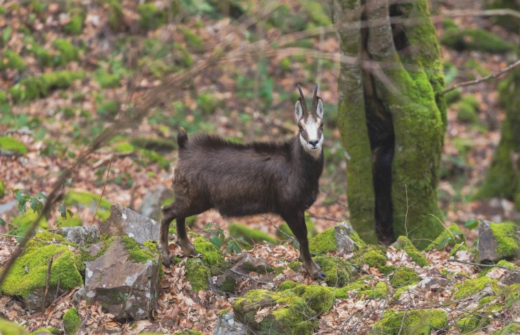 O capră neagră pornește pe cărare și se tot uită în jur cu atenție. E grăbită, pare că așteaptă pe cineva sau doar e atentă la ceva zgomote pe care le aude.